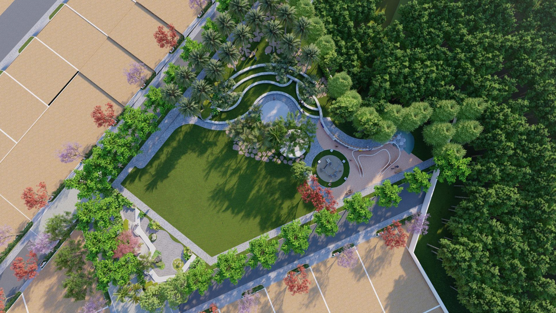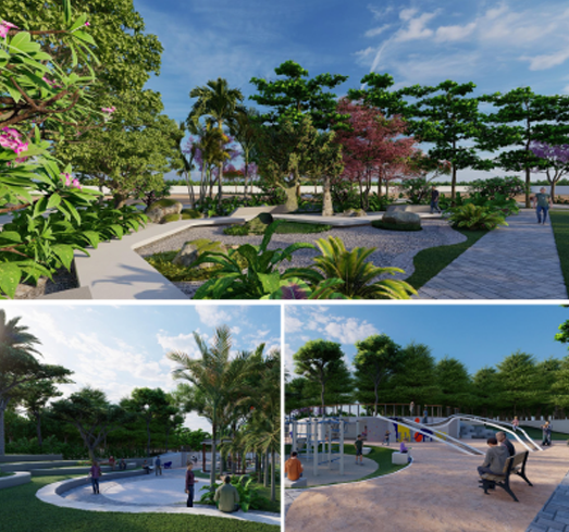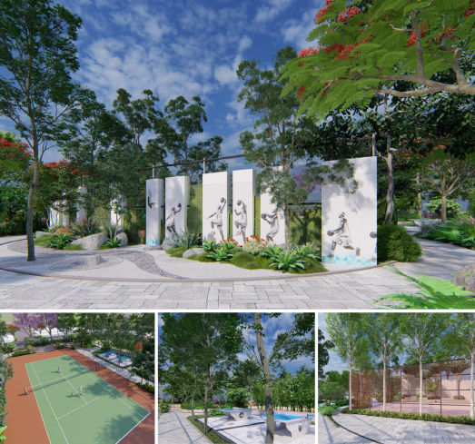Children’s play area | Amphitheatre | Tennis Court /Jogging track | Basketball court | Volleyball Court | Outdoor TT | Outdoor Gym| Zen Garden| Aroma garden | Meditation Zone | Cricket nets/ grounds for future expansion | Sand Pits | Archery | Skating Pathways | Reflexology Park | Sr Citizen Park | Yoga Park | Water Features